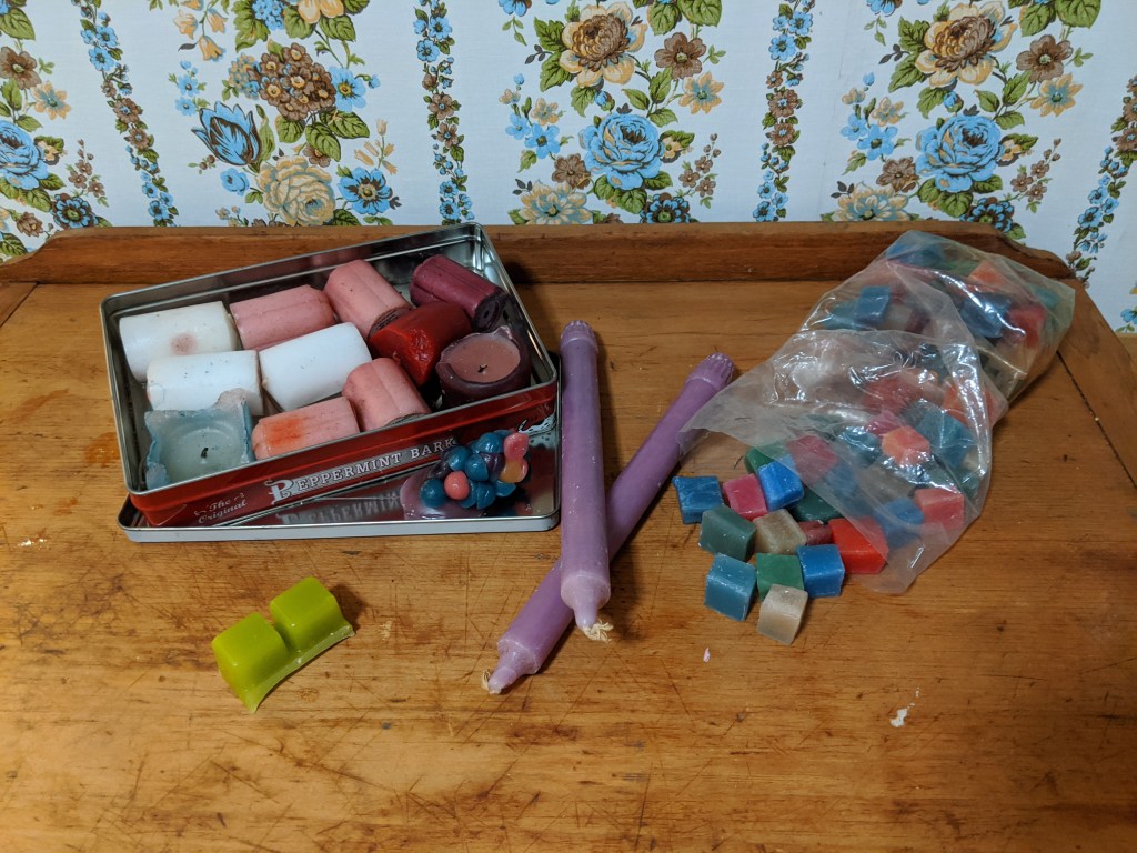 The green cubes are scented wax cubes. (Purchased at Walmart, these are “fresh meadow” scented)